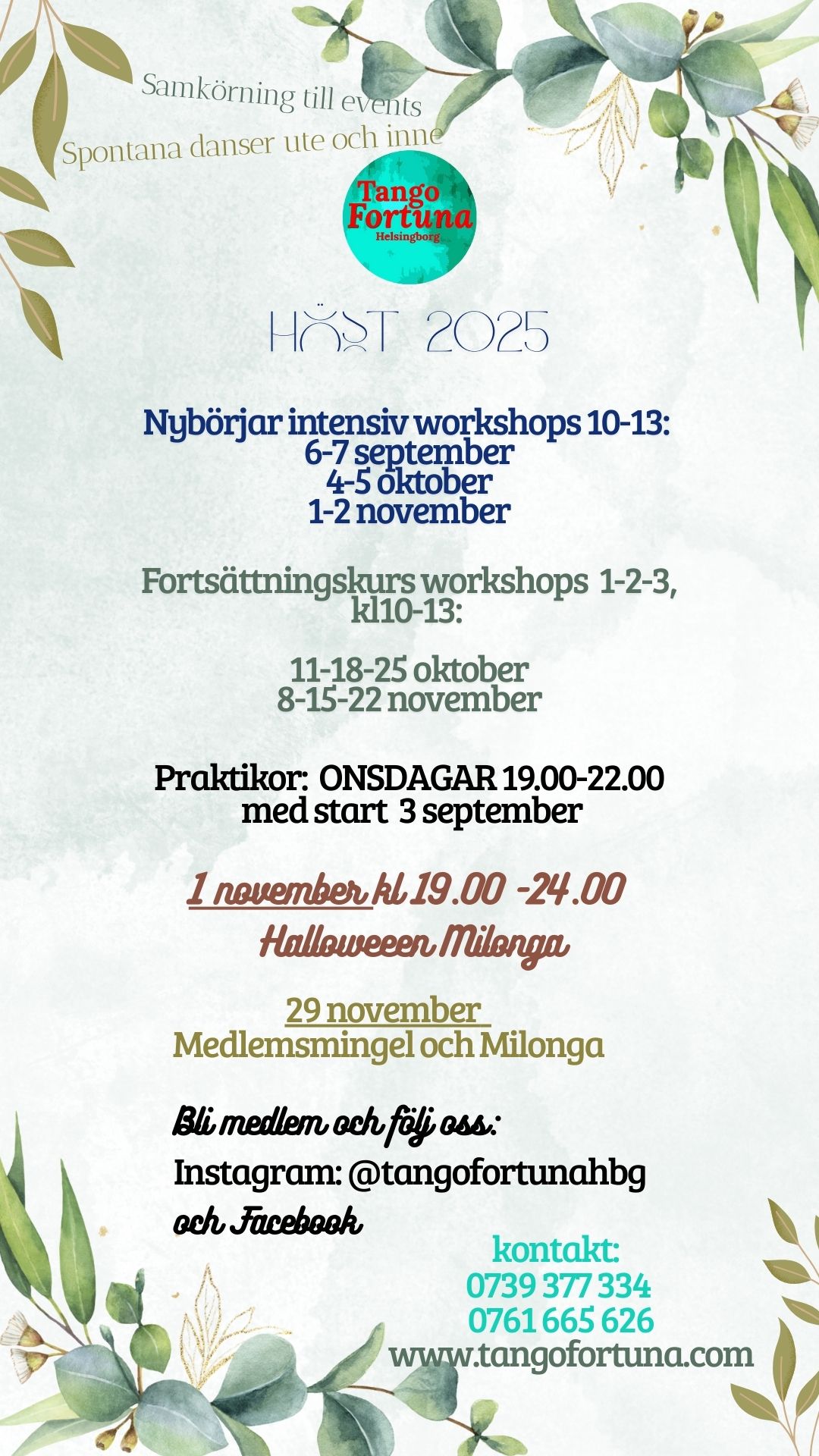 Vid frågor vänöigen kontakta tangofortuna@gmail.com eller 0761665626.